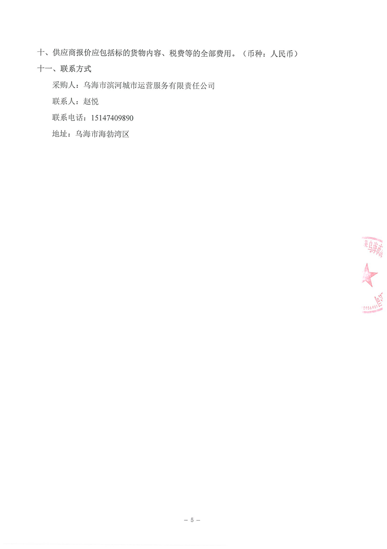 - 2025-07-17烏海市濱河城市運(yùn)營(yíng)服務(wù)有限責(zé)任公司電梯維保服務(wù)商采購(gòu)詢價(jià)文件